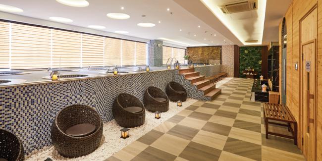 30개의 편안한 발 마사지 의자, 그리고 국제 표준의 자쿠지와 사우나가 갖춰져 있습니다.